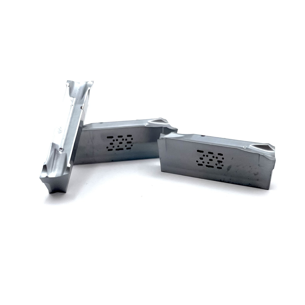 Первый выбор для мягких материалов, таких как низкоуглеродистая, легированная и аустенитная нержавеющая сталь, отрезки труб, для заготовок малого диаметра и тонкостенных заготовок на низкой и средней подаче. Режущая кромка с позитивной передней поверхностью. Стружколом JS-типа с острым углом.