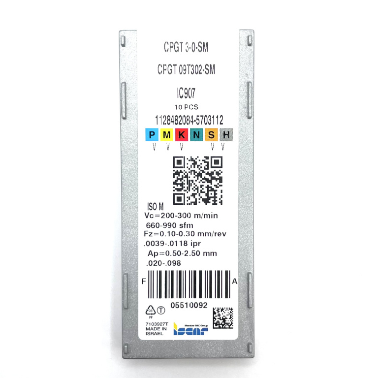 - P,M,K,S,H (Сталь,нержавеющая сталь,чугун,жаропрочные сплавы,закаленная сталь)