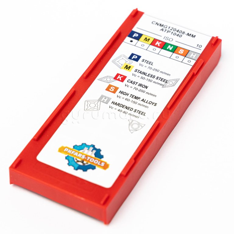 - P,M,K,S,H (Сталь,нержавеющая сталь,чугун,жаропрочные сплавы,закаленная сталь)