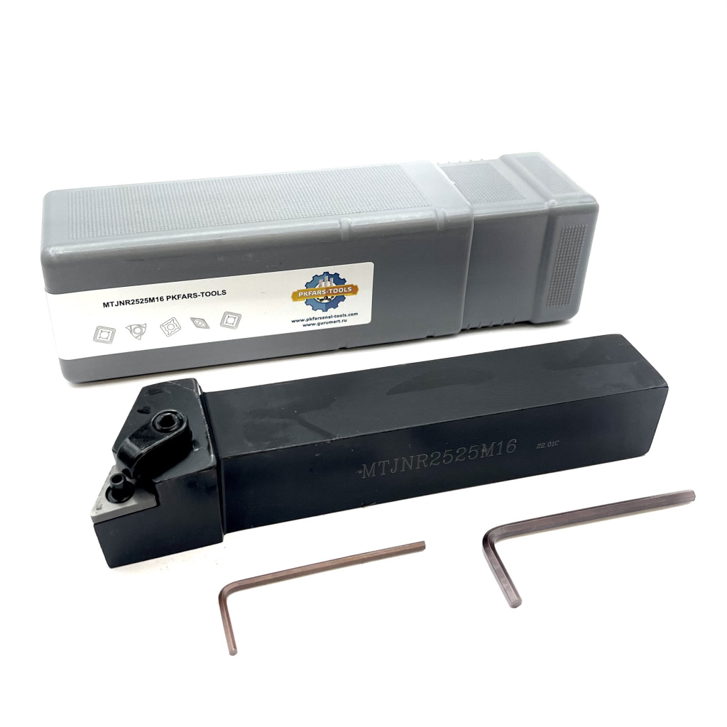 Резец токарный для наружного точения по металлу со сменными пластинами. Для пластин TN**1604**. Державка токарная с креплением типа M (прижим клин-прихватом сверху). С углом в плане 93°. Для продольного точения и подрезки торца.