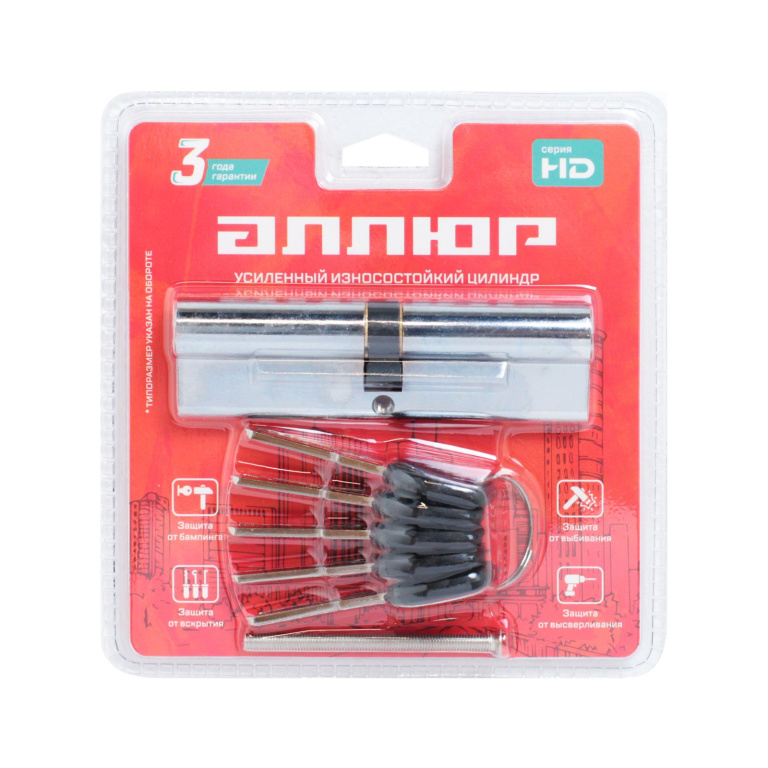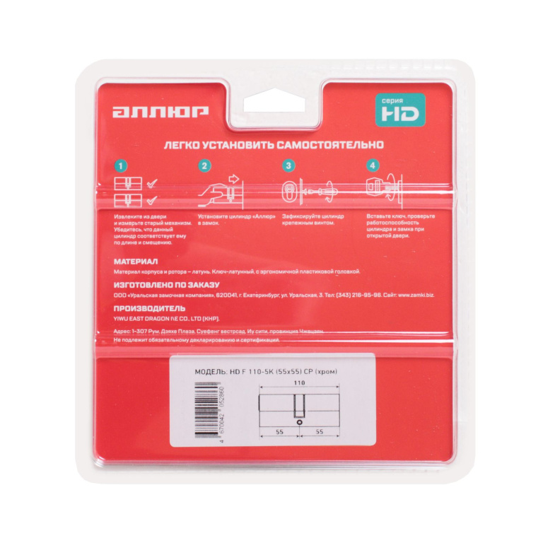 АЛЛЮР HD F 110-5К CP (55x55) хром перф.кл БЛИСТЕР Цилиндровый механизм