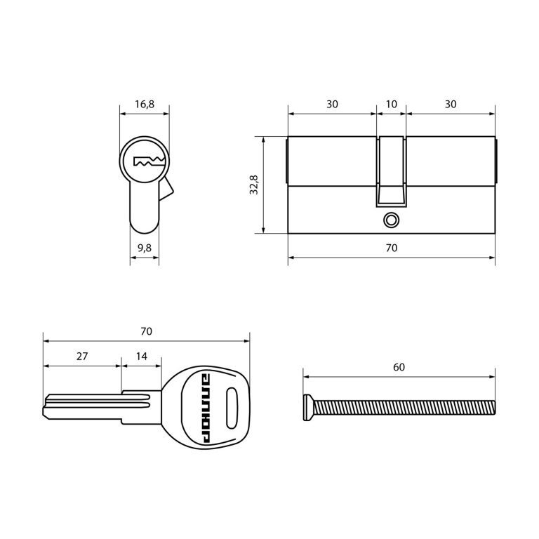 АЛЛЮР HD F 70-5К BP (35x35) латунь перф.кл Цилиндровый механизм
