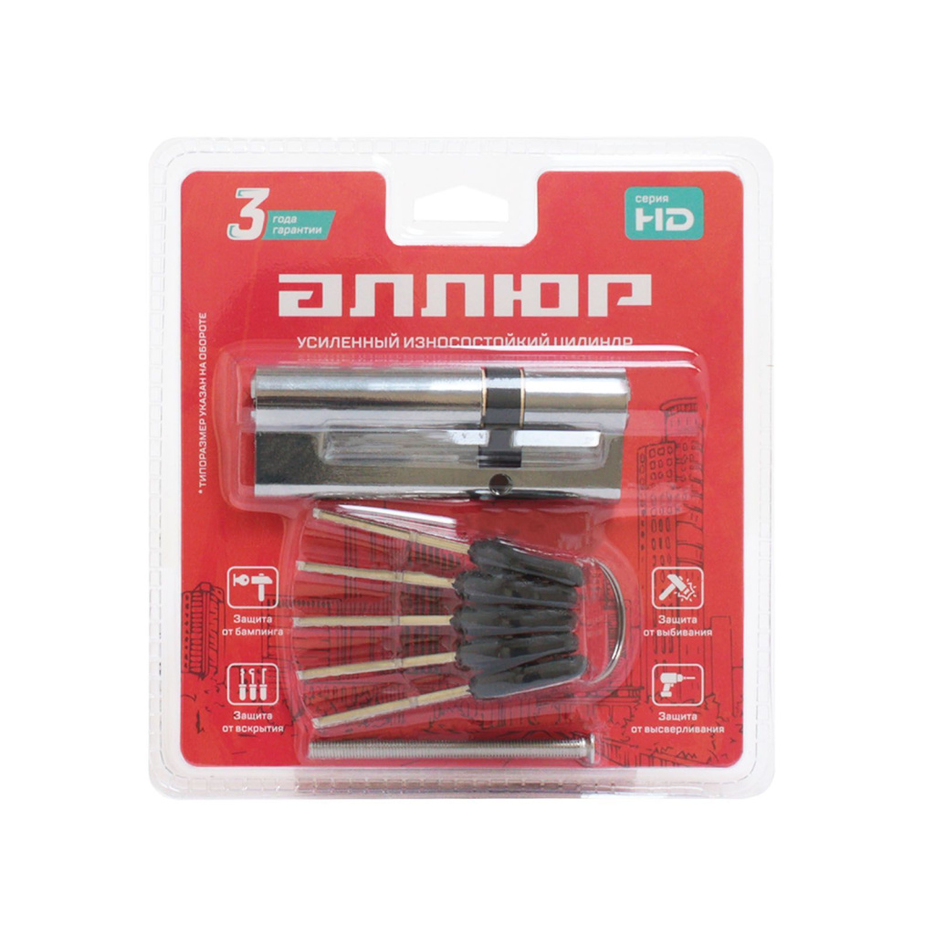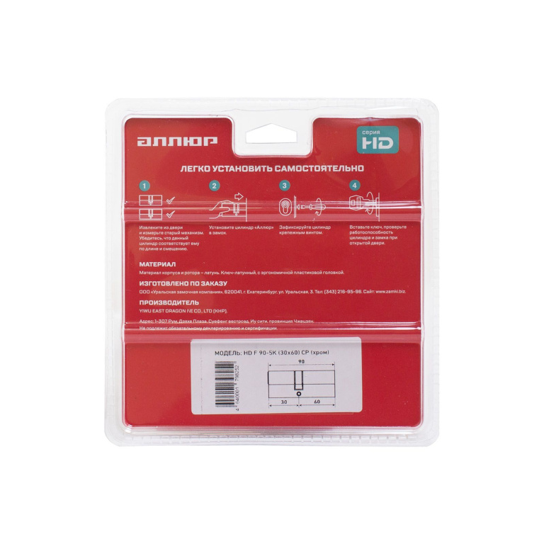 АЛЛЮР HD F 90-5К CP[25x10x55] (30x60) хром перф.кл БЛИСТЕР Цилиндровый механизм