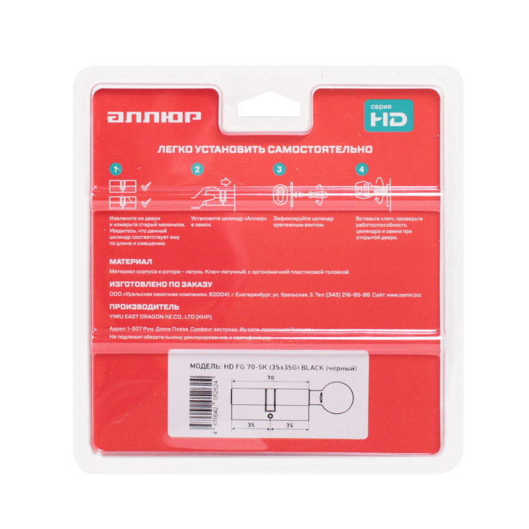 АЛЛЮР HD FG 70-5К BLACK (35x35G) черный перф.кл/верт БЛИСТЕР Цилиндровый механизм