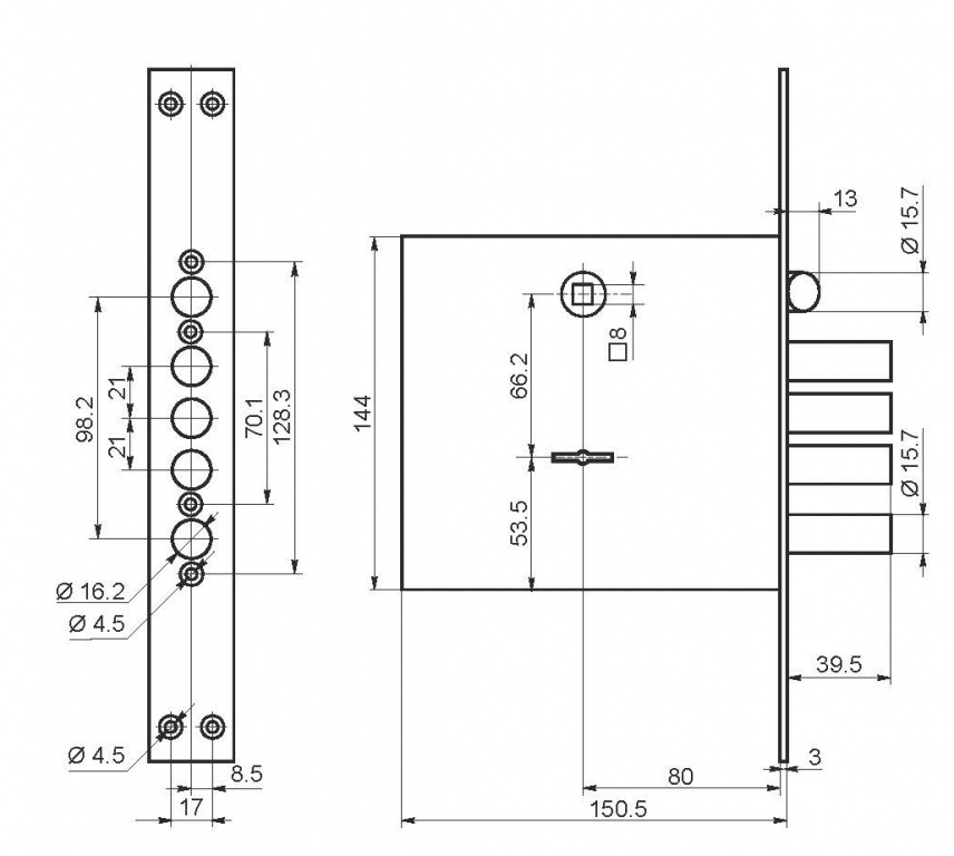 Замок врезной сувальдный с защёлкой Border (Бордер) ЗВ9-8 МК4/15, 5 кл. Универсальный /77740