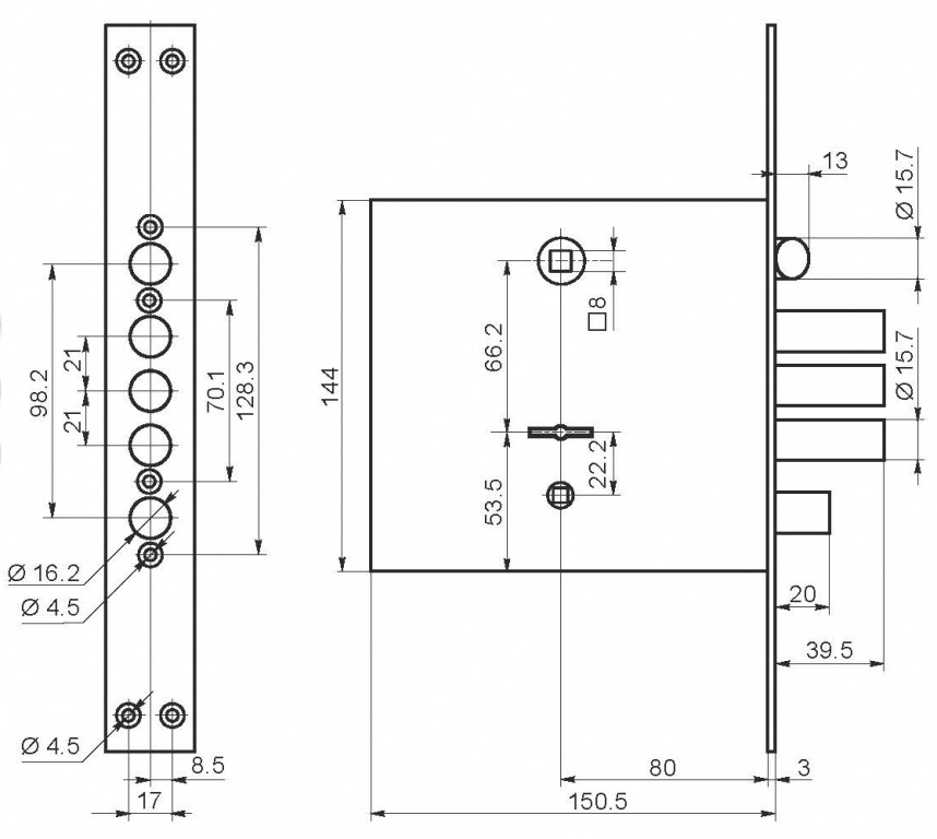 Замок врезной сувальдный с задвижкой и защёлкой Border (Бордер) ЗВ9-8 МКЗ/15, 5 кл. 77937
