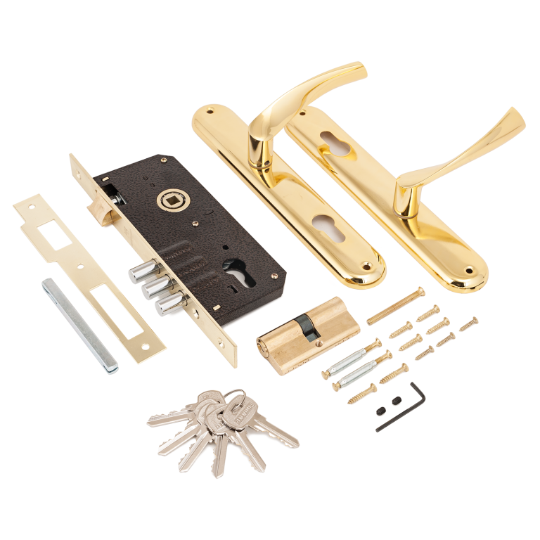 - Врезные замки с ручками для деревянных дверей