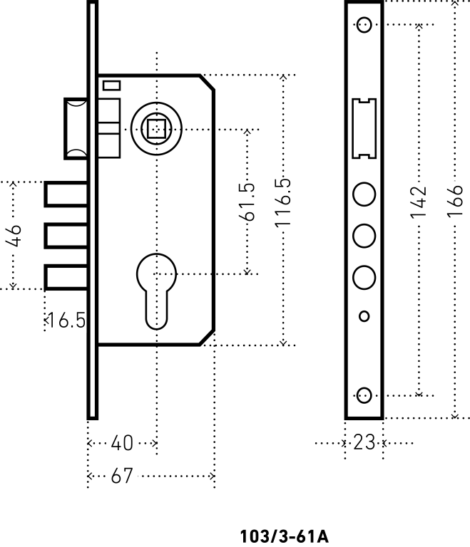 Замок врезной АЛЛЮР 103/3-61А(1203) CP ХРОМ МАЛ.КОРПУС