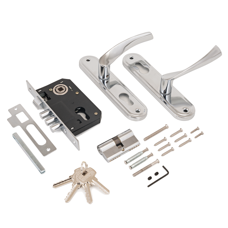 - Врезные замки с ручками для деревянных дверей