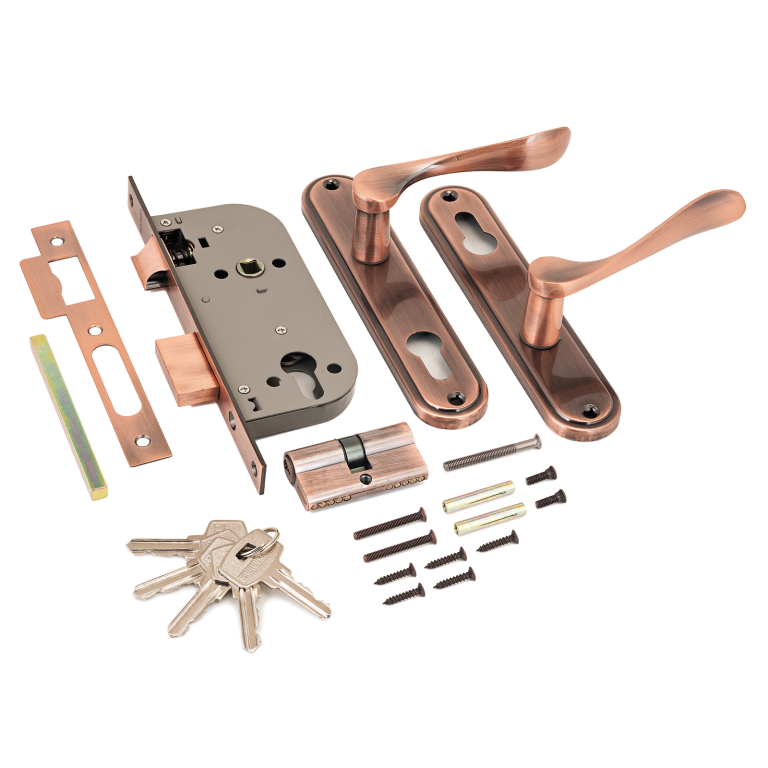 - Врезные замки с ручками для деревянных дверей
