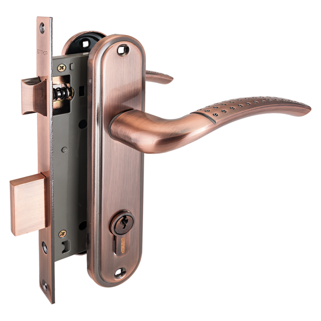 - Врезные замки с ручками для деревянных дверей