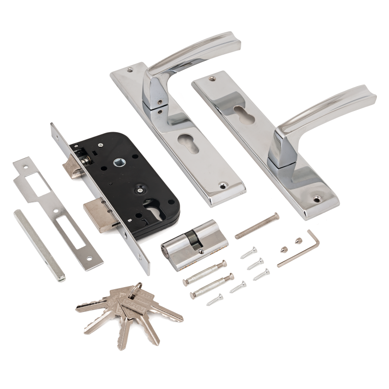 - Врезные замки с ручками для деревянных дверей