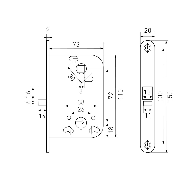 - Врезные замки без ручек для деревянных дверей