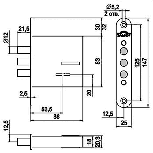 Замок врезной ЭЛЬБОР REX 1.4. 3 КЛ Б/О (1.04.04)