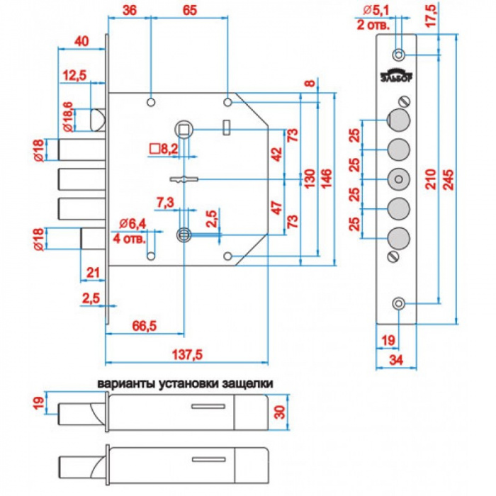Замок врезной ЭЛЬБОР REX 3.11 5 КЛ ПРАВ. Б/О С/Т (1.06.43.5)