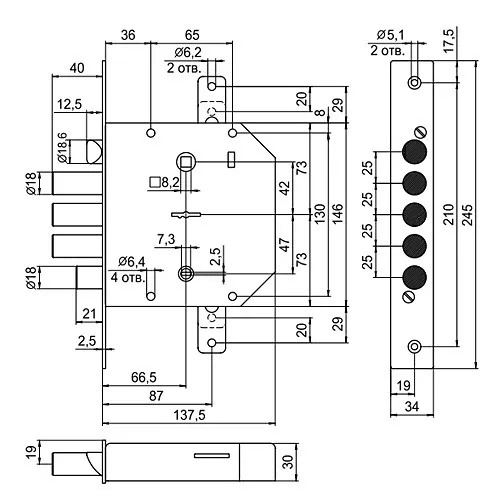 Замок врезной Эльбор 1.06.42.5.5 Гранит левый задв с/т б/о