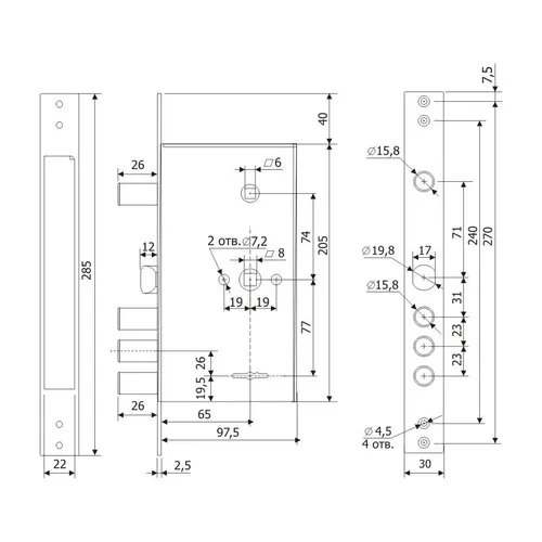 Замок сувальдный «Гардиан 30.15» с защелкой и задвижкой