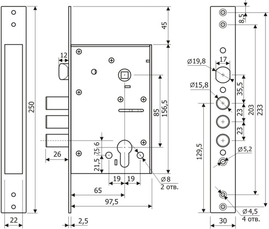 Врезной замок Guardian (Гардиан) 32.11 с защёлкой