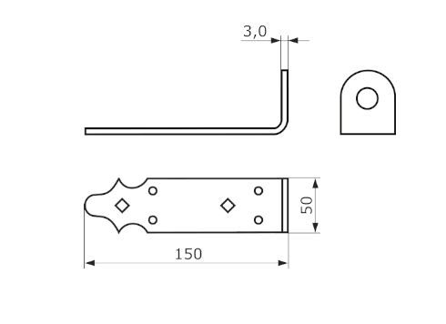 Домарт Проушина воротная 150х50х50 d 20мм кованая серия Суздаль черн.