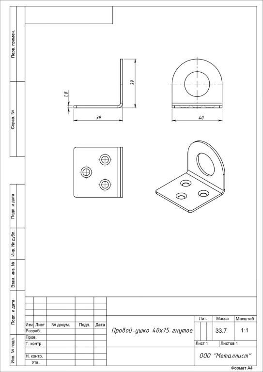 Проушина д/нав.замков Кунгур 40х75 угловая цинк d20мм пара