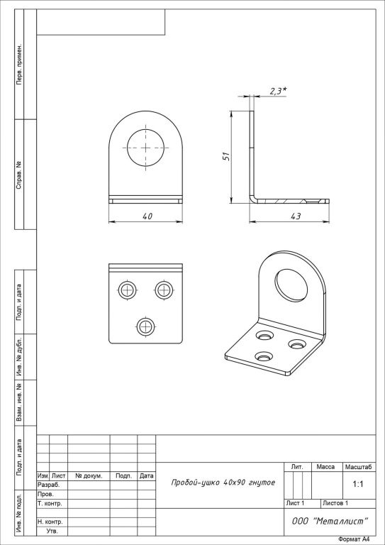 Проушина д/нав.замков Кунгур 40х90 угловая цинк d20мм пара