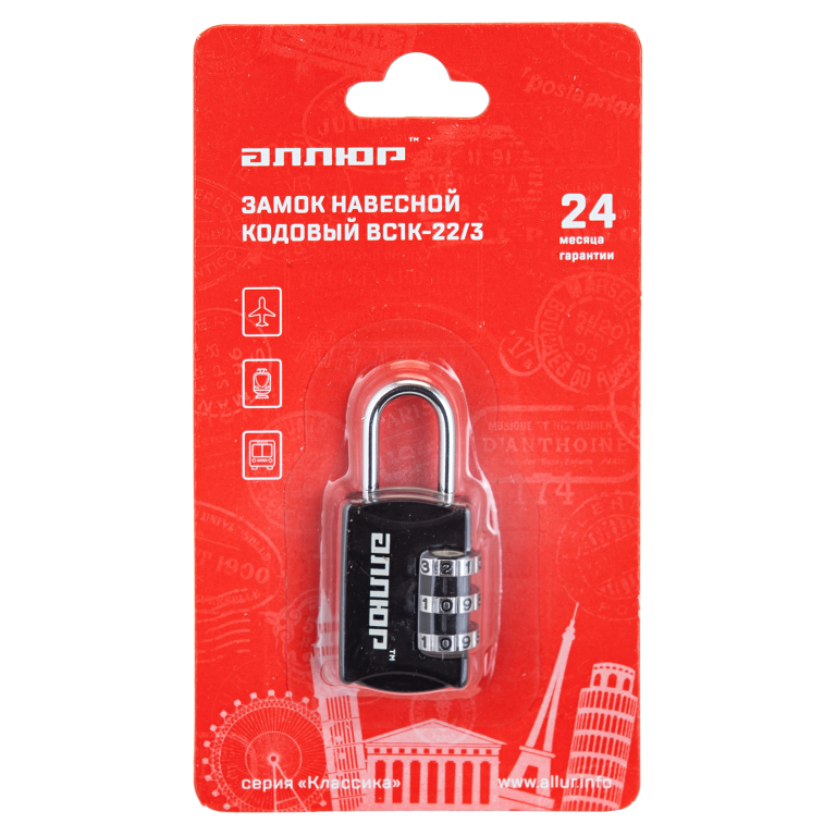 АЛЛЮР ВС1К-22/3 (HA816) черный кодовый d=3мм Замок навесной