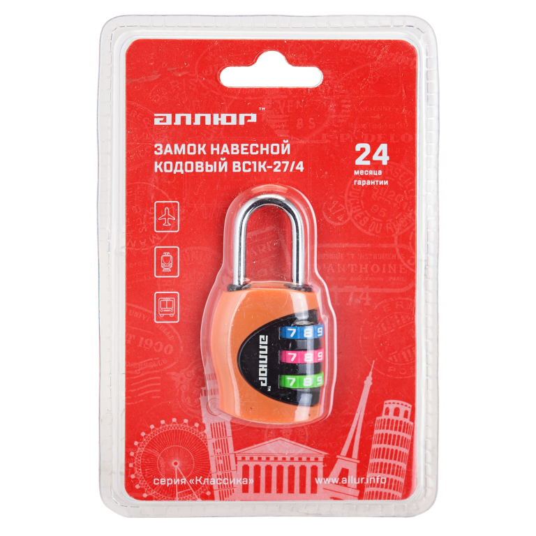 АЛЛЮР ВС1К-27/4 (F5) оранжевый кодовый d=4мм Замок навесной