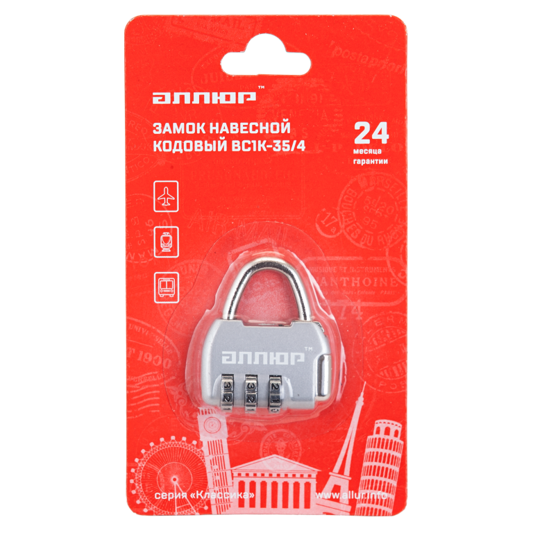 АЛЛЮР ВС1К-35/4 (HA806) CP серебро кодовый d=4мм Замок навесной