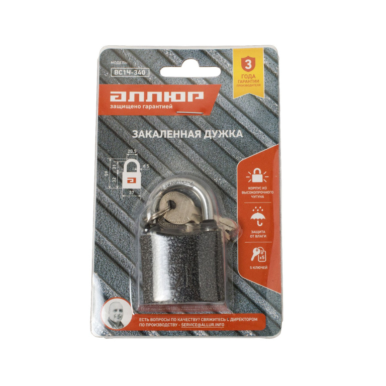 АЛЛЮР ВС1Ч-340 d5мм полимер 5кл. Замок навесной