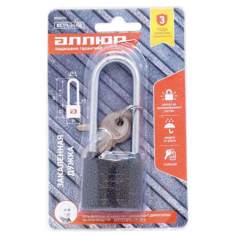АЛЛЮР ВС1Ч-340Д дл.дужка d5мм 5кл. Замок навесной