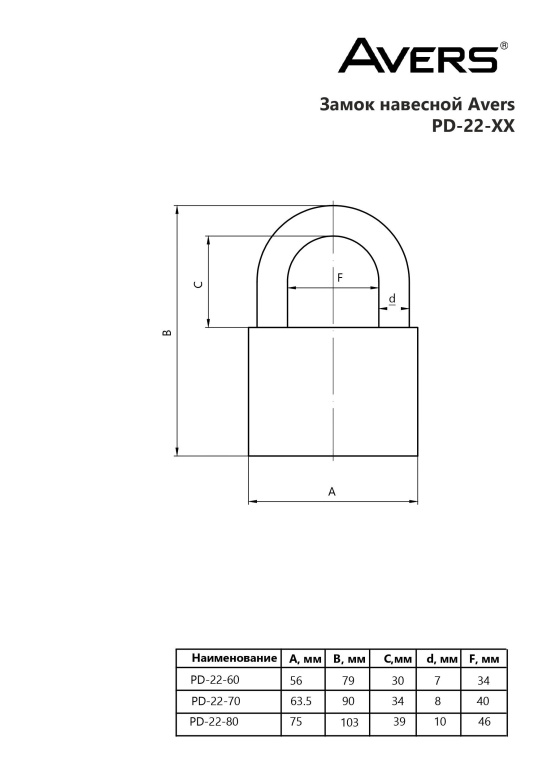 AVERS PD-22-70-Blister d8мм Замок навесной
