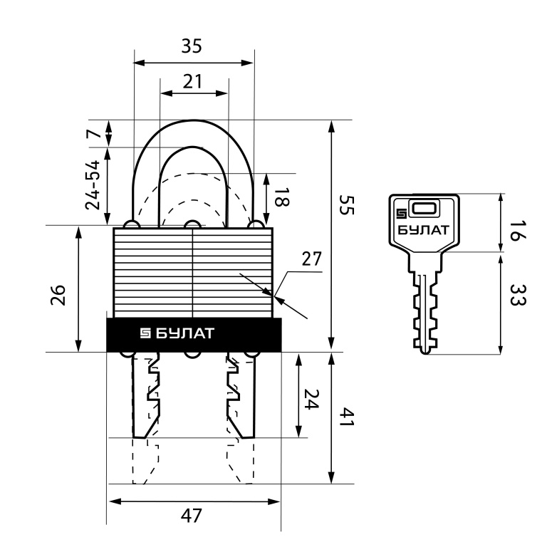 БУЛАТ ВС 0945 стальной 5кл. d=7мм Замок навесной