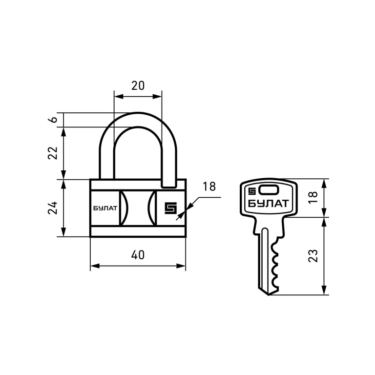 БУЛАТ ВС 1-О40 латунный 5кл. d=6мм Замок навесной