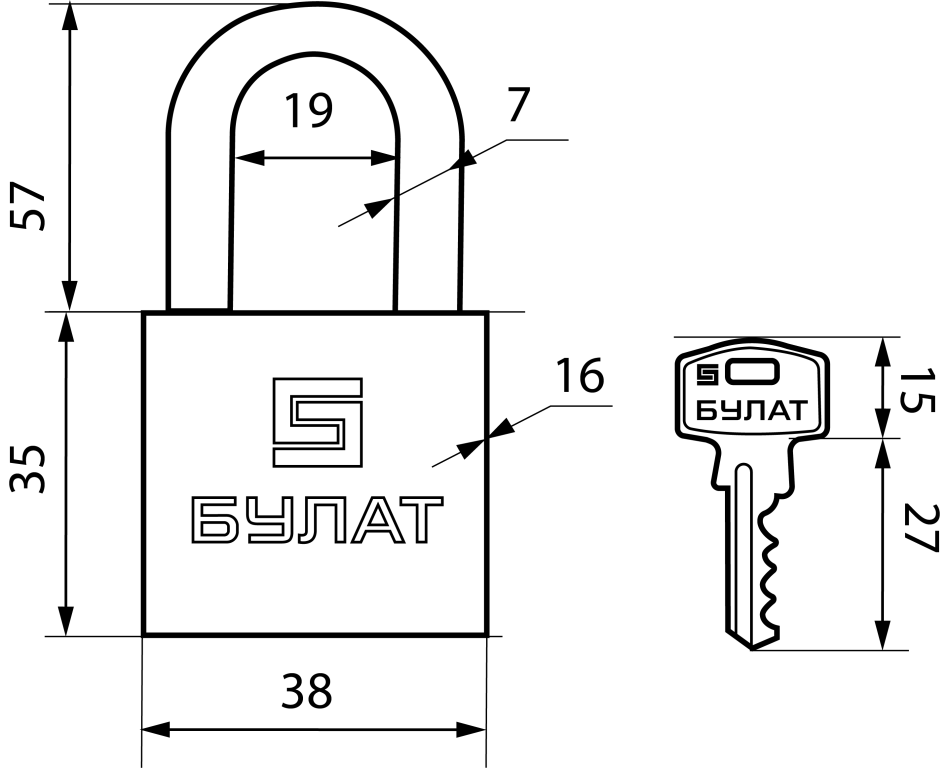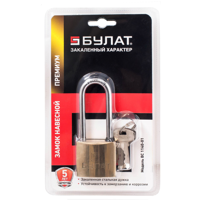 БУЛАТ ВС 1140-01 латунный 5кл. d=6,5мм Замок навесной