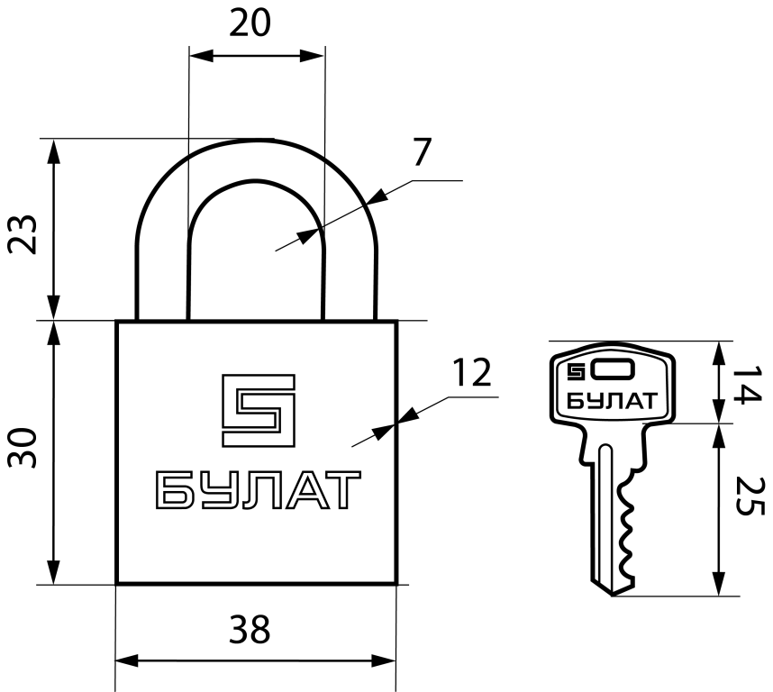 БУЛАТ ВС 1140 латунный d=6,5мм Замок навесной