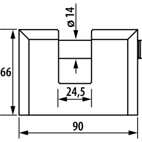 Замок навесной дисковый общего применения. Материал корпуса - сталь, покрыт полимерной краской. Стальная дужка диаметром 14 мм; проем дужки - 18 мм по высоте и 24,5 мм по ширине. Прямая закаленная дужка и высокопрочный корпус, надежно защищающий дужку от перепиливания и взлома ломом. Габариты корпуса - 66х90х35 мм. Комплектуется 3 финскими ключами.