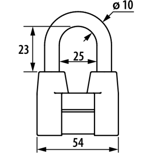 Замок навесной дисковый общего применения. Материал корпуса - силумин, покрыт полимерной краской. Стальная дужка диаметром 10 мм; проем дужки - 23,2 мм по высоте и 25,2 мм по ширине. Габариты корпуса - 57х79х30 мм. Комплектуется 3 финскими ключами. Замок имеет боковой вход ключа.