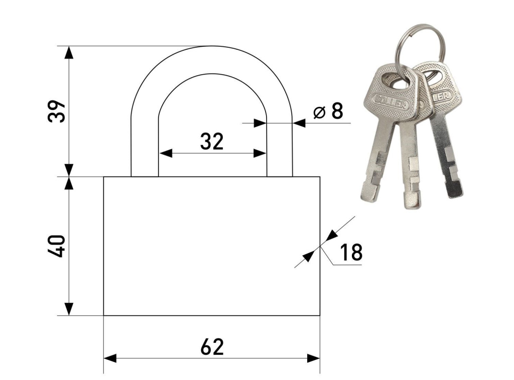Замок навесной общего применения. Оптимальное соотношение цены и качества. Материал корпуса сталь, цвет сатин. Материал дужки закаленная сталь, гальваническое покрытие. Автоматического запирания нет. Комплектуется 3 дисковыми ключами. Ширина корпуса - 62 мм. Ширина проема под дужкой - 32 мм. Толщина дужки 8 мм.