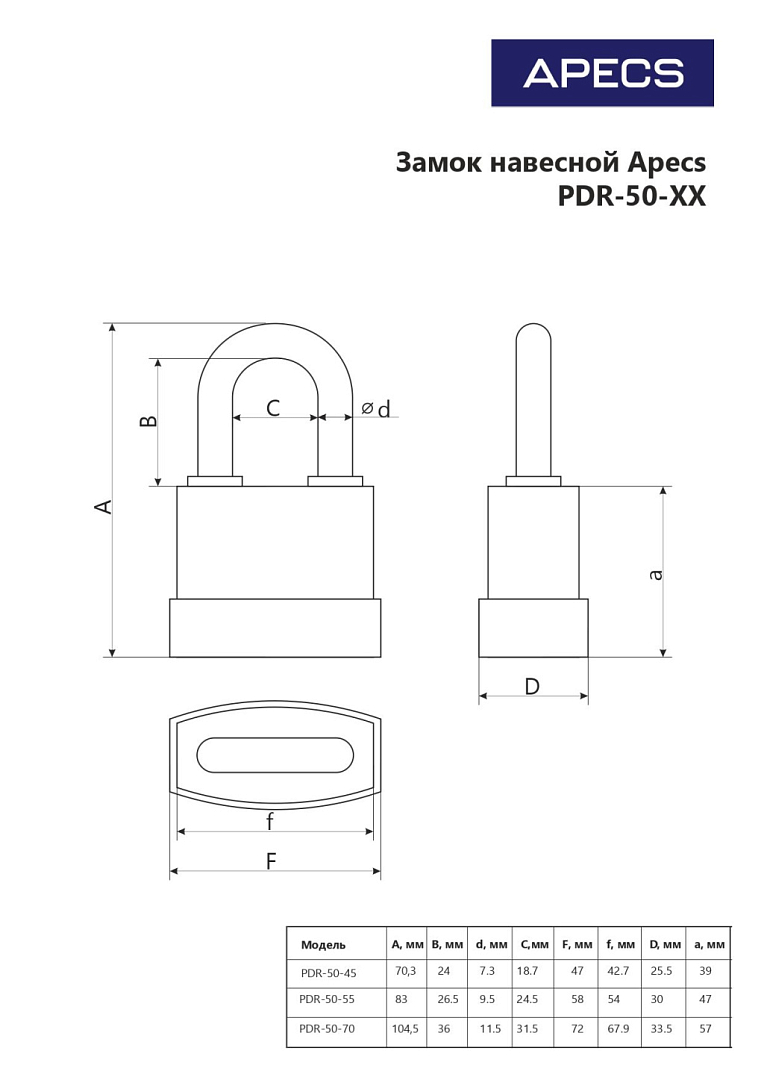 Апекс PDR-50-70 блистер d11,5мм Замок навесной