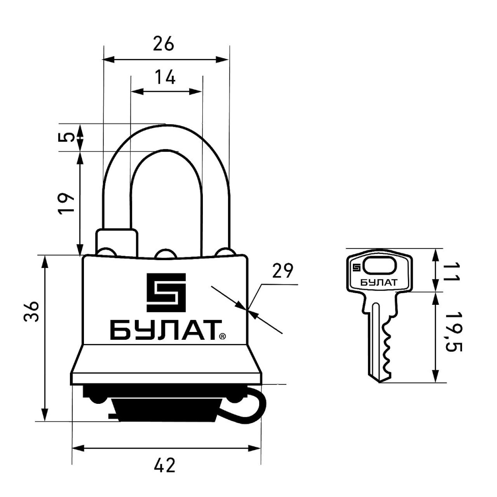 БУЛАТ ВС 0330 всепогодный 5кл. d=5мм Замок навесной