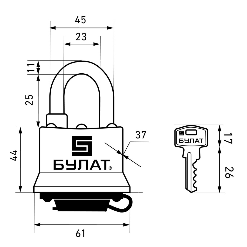БУЛАТ ВС 0350 всепогодный 5кл. d=11мм Замок навесной