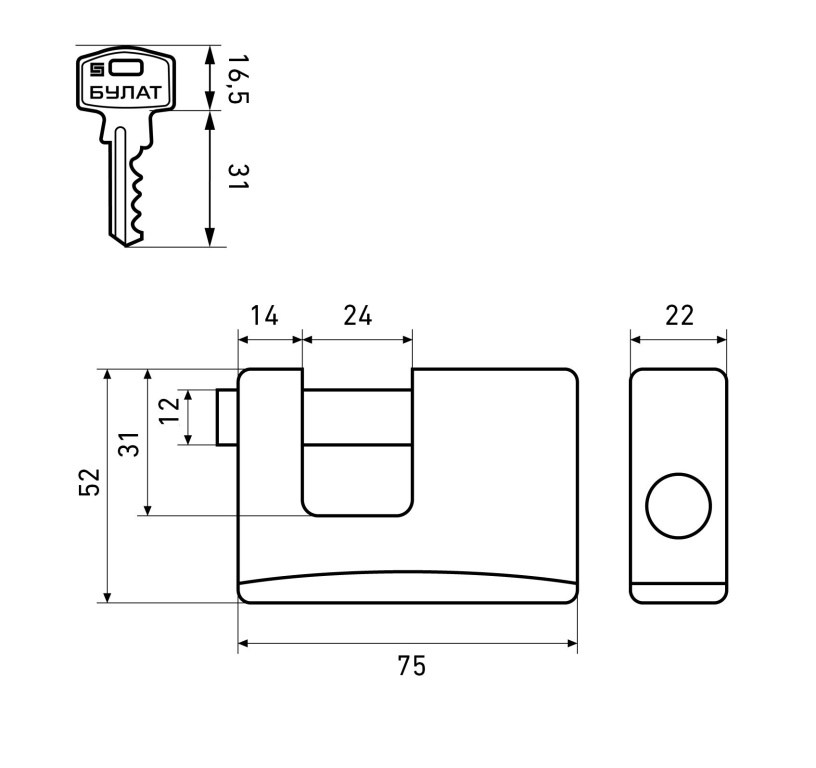 БУЛАТ ВС 1-К75 ПЛ всепогодный 5кл. d=12мм Замок навесной