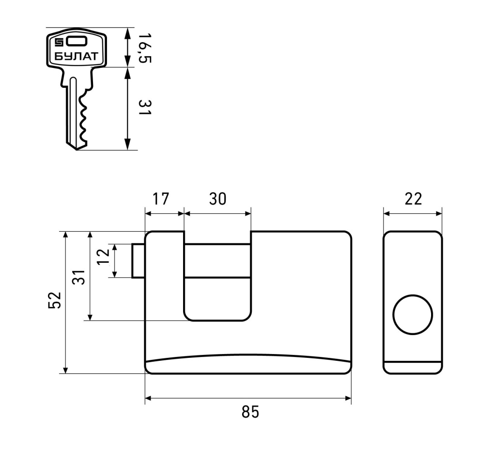 БУЛАТ ВС 1-К85 ПЛ всепогодный 5кл. d=12мм Замок навесной