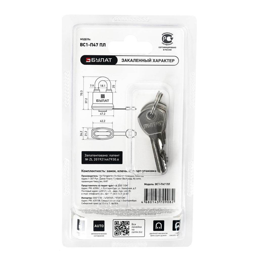 БУЛАТ ВС 1-П47 ПЛ всепогодный 5 кл. d=7,9мм Замок навесной