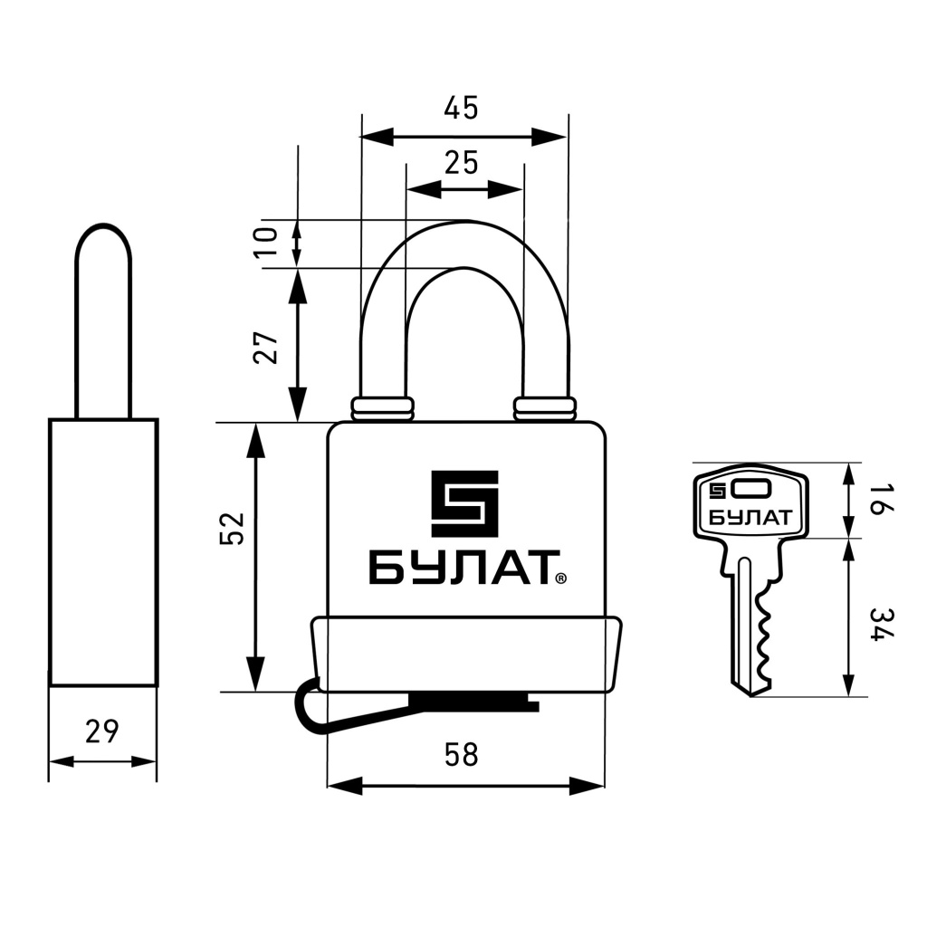 БУЛАТ ВС 1-П53 ПЛ всепогодный 5кл. d=10мм Замок навесной
