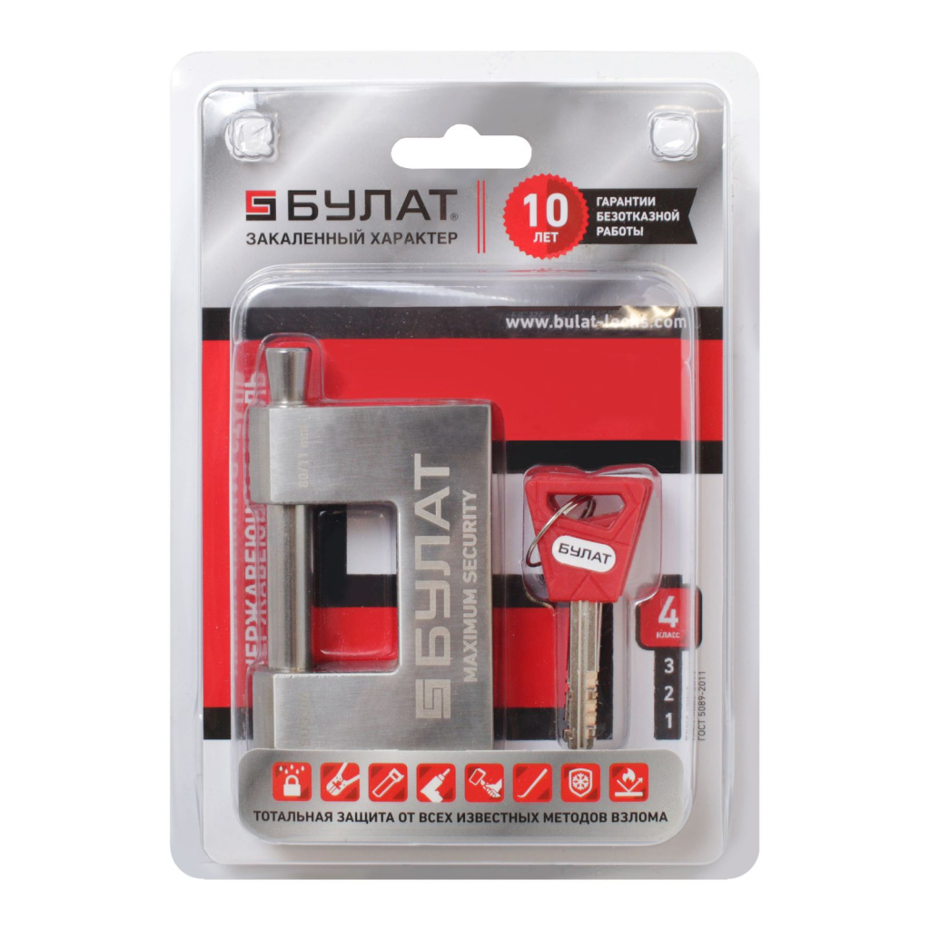 БУЛАТ ВС 3-К80 НС нержавеющая сталь 3кл. d=11мм Замок навесной