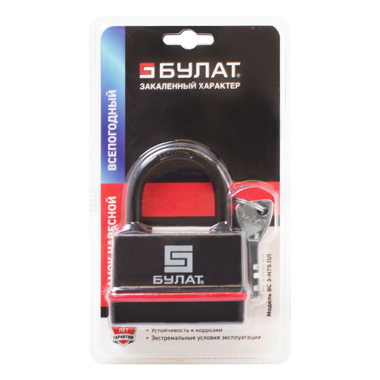 БУЛАТ ВС 3-Н75 ПЛ всепогодный 5кл. d=10мм Замок навесной
