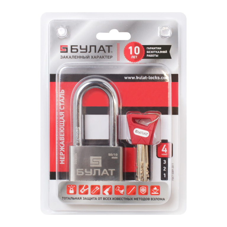 БУЛАТ ВС 3-С50-01 НС нержавеющая сталь 3кл. d=10мм Замок навесной