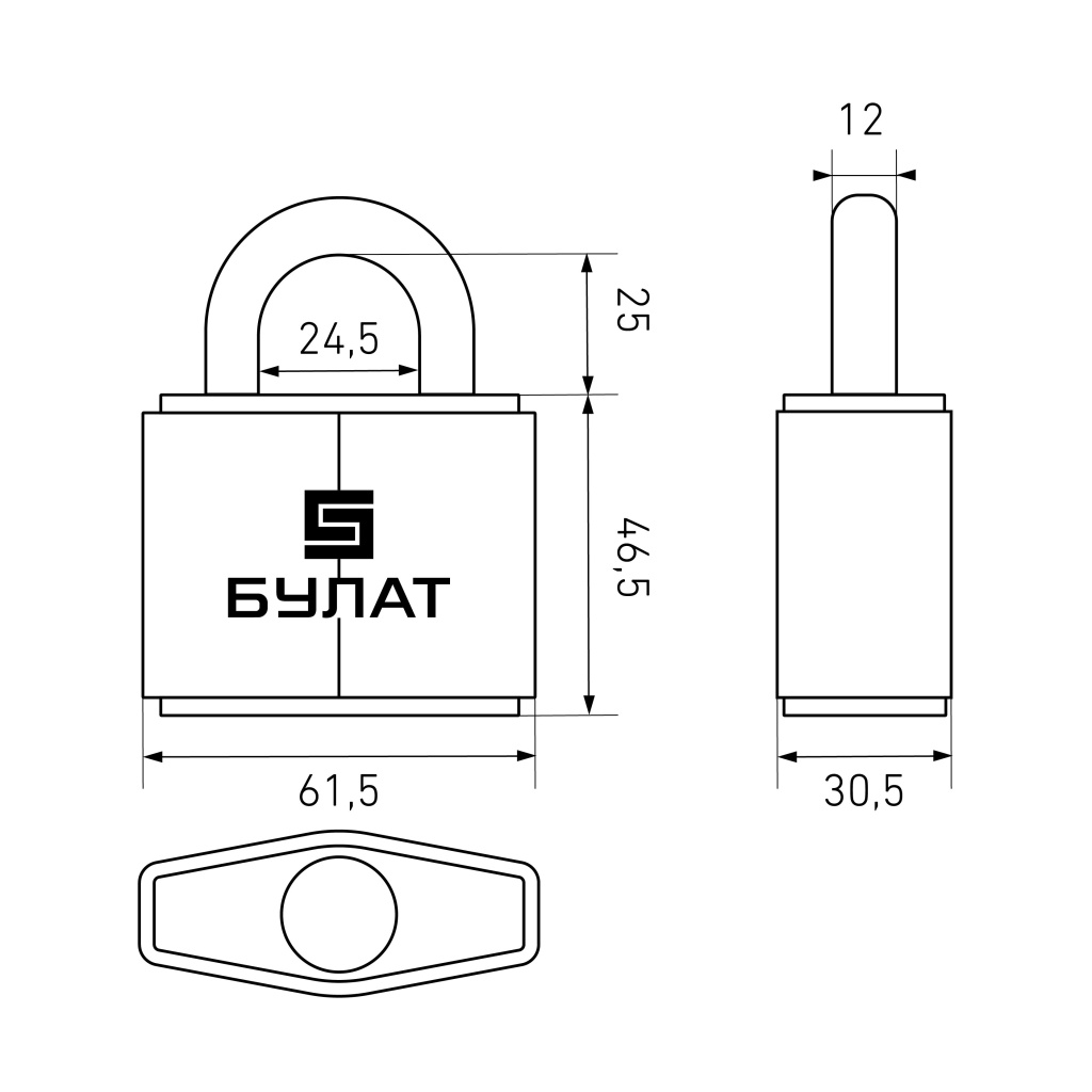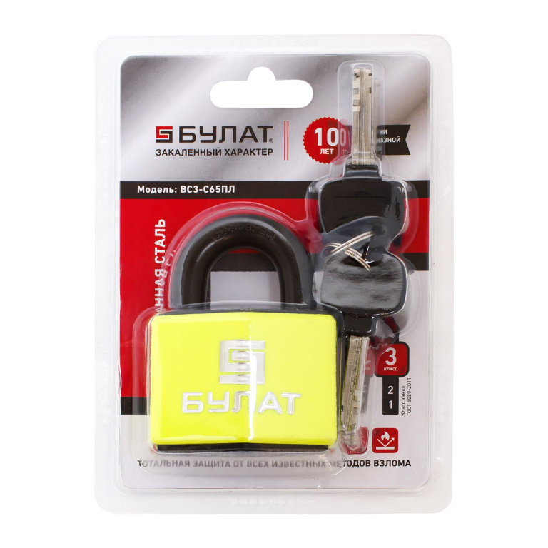 БУЛАТ ВС 3-С65 ПЛ закаленная сталь 5кл. d=12мм Замок навесной
