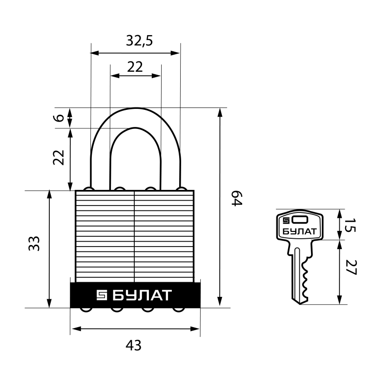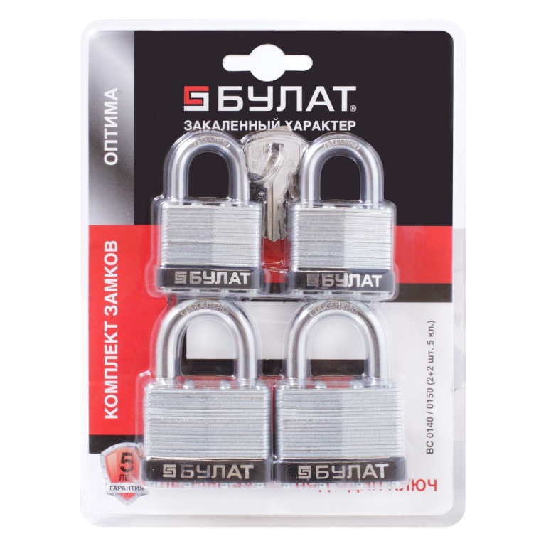 БУЛАТ ВС 0140/0150 ПОД ОДИН КЛЮЧ компл.- 4шт 5кл. d=6/9мм Замок навесной